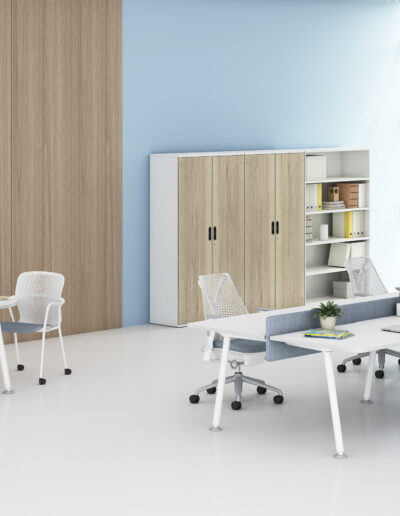Paragraph was designed to be applied in a variety of ways from personal storage or team filing through to space division or archive, reflecting the varied landscapes in the office today. The choice of heights, widths and finishes will readily complement existing furniture